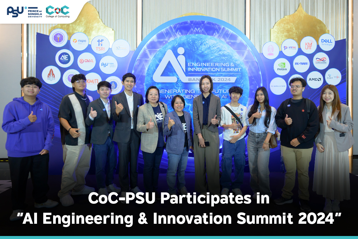 On December 13, 2024, staff and students from the Artificial Intelligence and Intelligent Systems program at the College of Computing, Prince of Songkla University, Phuket Campus, participated in the “AI Engineering & Innovation Summit 2024,” from 9:00 AM to 6:00 PM at the Grand Ballroom, 4th Floor, The Ritz-Carlton Hotel, Bangkok.