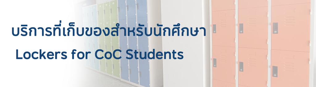 บริการที่เก็บของสำหรับนักศึกษา Lockers for CoC Students https://docs.google.com/forms/d/e/1FAIpQLScYjEGs9nVH5aKlzbK7DGtoUE0iNiACwslLC4hoCAV1uKMKIA/viewform