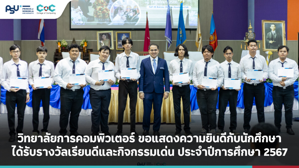วิทยาลัยการคอมพิวเตอร์ มหาวิทยาลัยสงขลานครินทร์ ขอแสดงความยินดีกับนักศึกษาที่ได้รับรางวัลเรียนดีและกิจกรรมเด่น ประจำปีการศึกษา 2567