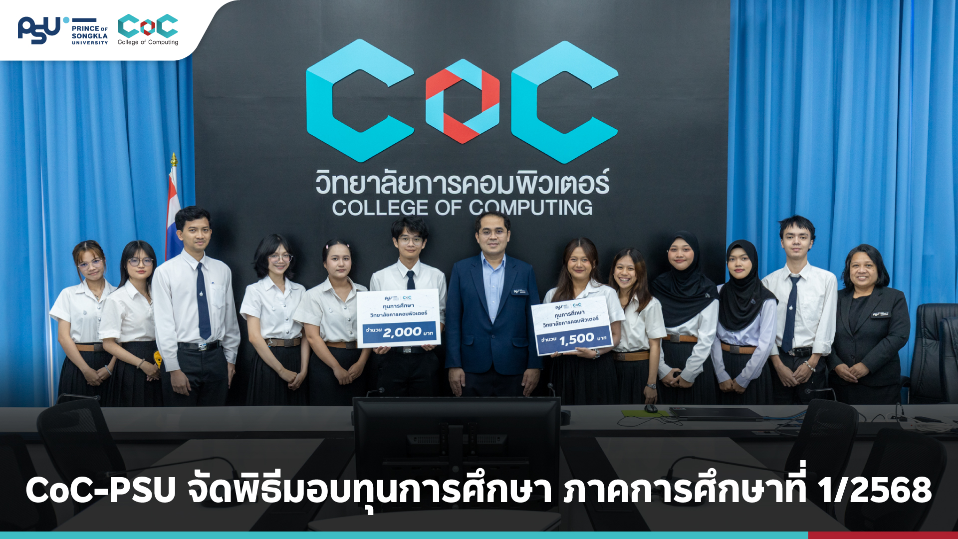 เมื่อวันที่ 24 กันยายน 2568 วิทยาลัยการคอมพิวเตอร์ มหาวิทยาลัยสงขลานครินทร์ จัดพิธีมอบทุนการศึกษา ประจำภาคการศึกษาที่ 1/2568 ณ ห้องประชุม 6202 อาคาร 6 ชั้น 2 โดยมี รองศาสตราจารย์ ดร.อซีส นันทอมรพงศ์ คณบดีวิทยาลัยการคอมพิวเตอร์ ให้เกียรติเป็นประธานในพิธีและมอบทุนการศึกษา
