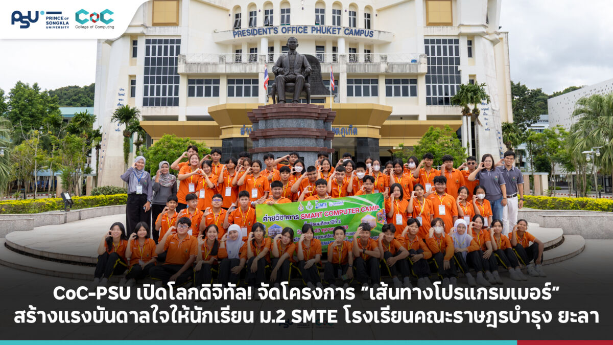 วิทยาลัยการคอมพิวเตอร์ (College of Computing: CoC) มหาวิทยาลัยสงขลานครินทร์ วิทยาเขตภูเก็ต จัดโครงการอบรมเชิงปฏิบัติการ “เส้นทางโปรแกรมเมอร์ (Programmer Pathway)” สำหรับนักเรียนชั้นมัธยมศึกษาปีที่ 2 ห้องเรียน SMTE (Science, Math, Technology and Environment) จากโรงเรียนคณะราษฎรบำรุง จังหวัดยะลา ระหว่างวันที่ 25–26 ตุลาคม 2568 ณ วิทยาลัยการคอมพิวเตอร์